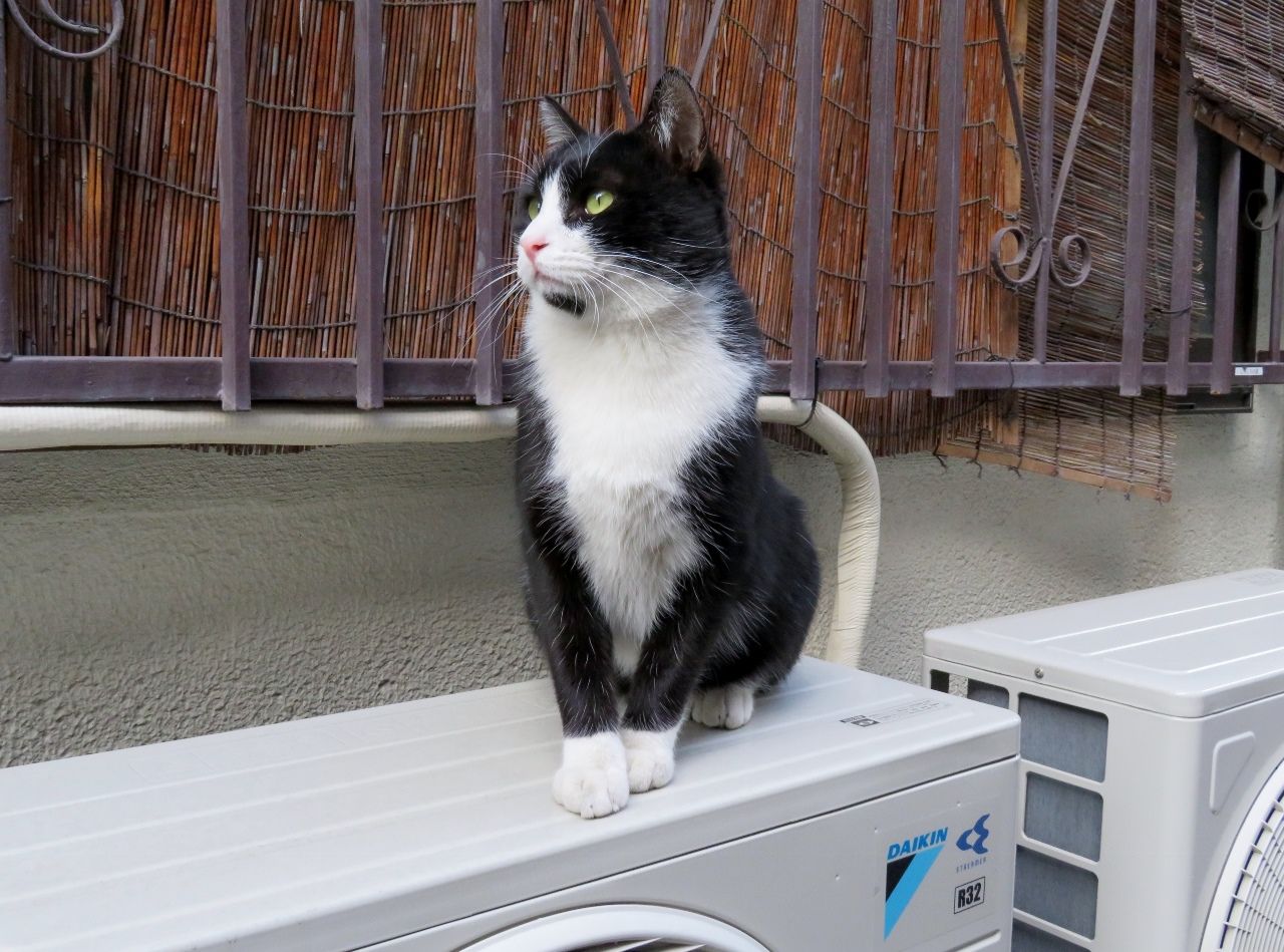 そして遂に、『シロクロの家』の前にある室外機の上まで、足を延ばしました。シロクロの飼い主がこの光景を見たら、どう思ったでしょうか?