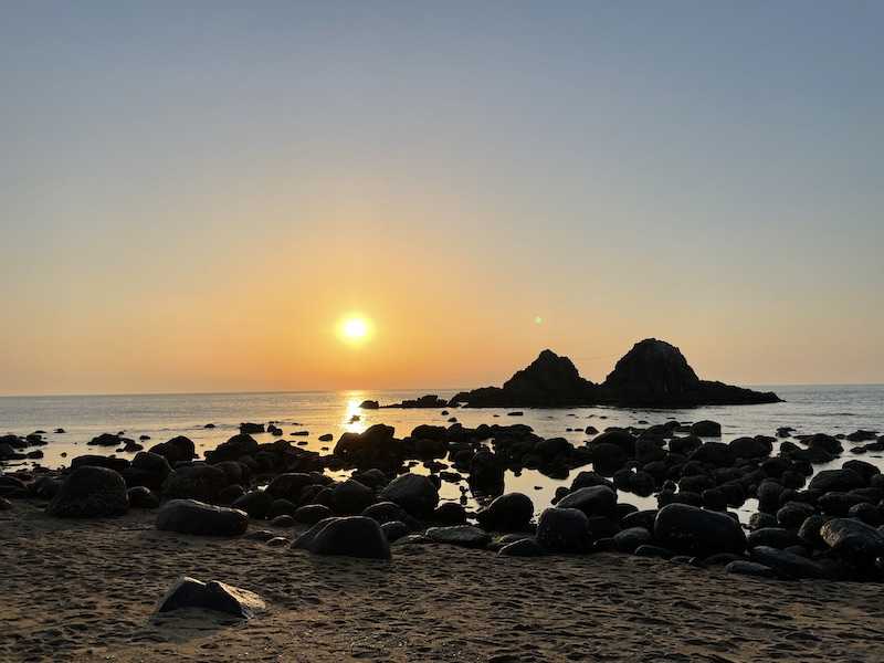 夫婦岩の砂浜のところで夕日を見て帰ることにした。