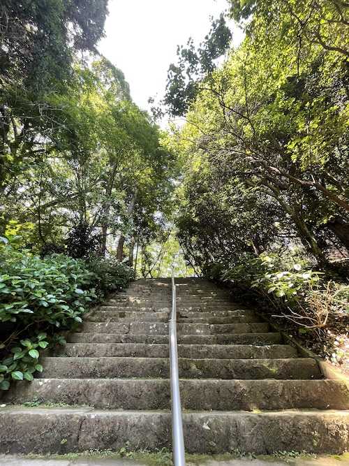 参道の途中にある石に座って、しばらくこの場所の波動に