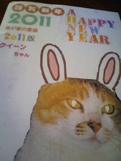 皆さん、もう年賀状は済みました?うちは仕事関係はパパの担当。子供たちはそれぞれ自分で作るようになったので、とっても楽になりましたそうなってくると自分のが面倒になってくるもうメールで済ましちゃおうか?なんて考えたりする。あ、でも、アドレス知らない友達もいるしな次男が年賀状を作っていたので「その年賀状使ってもいい? 名前はママに書き換えて」 と聞いてみた。快諾してくれたので出来上がりを楽しみにしてたのですが・・・とっても可愛すぎる出来上がりでした。オバサンが出す年賀状にしては、可愛すぎるんだな~クィーンちゃんの画像だけ使わせてもらってアレンジしようかな??その次男ですが火遊びの件で 学校で4日連続のお説教を受け授業態度と服装の件で 塾でもお説教されてさすがに参った様子 (母も参りました)夜は9時に寝て、早起きして朝勉。塾でも教室の外で自習。人が変わったようです。いつまで続くか分からないけどね