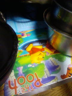 シンク下の掃除、一区画できました。三区画あるんですけどね。一区画でもできたのでホッとしてますせっかく掃除するのですからわが家の不用品を活用してみました・・・景品でもらった2007年のプーさんのカレンダー。プラスチック製なのでシンクの下敷きにぴったり!残る二区画の下敷きもプーさんでいってみようと思ってます。うちのシンク下は、とってもメルヘンチックふふそれはそうと今年も白菜ラッシュの季節になりました。周辺の農家から次々頂く。ありがたい~。でも食べきれない~なので昨日から白菜と闘ってます。昨日のメニューは白菜消費の王道、鍋!いつもなら鍋で残った白菜を次の日八宝菜にするのがパターンですが白菜消費強化ってことで白菜の浅漬け2種 (キムチ風味、柚子風味) を作りました。キムチ風味はキムチの素で合えたもの。柚子風味は柚子茶を投入しました。キムチの素も柚子茶も余りがちなので、余り食材オンパレードそれから今日のメニューはロール白菜!キャベツを使うのよりは、水分が多いのでスープのお味は濃い目にしたほうがよいと思います・・・中華スープで煮込んで、あんかけ風にしてみました。昨日と今日で消費した白菜は1個半。お向かいに1個あげて、マイナス2個半。まだあと3個あるよ~