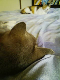 こんばんは。台風一号が発生してるそうですね昨日、夏布団に替えて毛布を洗ってベランダに干したんですよ。で 今日雨でしょ。当分お天気が悪くて・・・毛布が乾くのはいつなんだろう??夏布団の上で喜んでいるのは、うちの猫たち・・・ね~ね~お母さん、今日のお布団 気持ちいいね明日はきっと雨よ。いつもそうなのよ話が変わりますが寺の近辺でマムシが現れたそうなんです。寺の近くに住むパグさん(パグさんというのは見た目は土佐犬のようにイカツイけど笑うとパグ犬に似て見えるおじさん)そのパグさんが犬の散歩の途中にマムシに遭遇してパグさんの飼い犬がマムシに噛まれた!寺の裏側で山を切り開いて道路工事をしてるんですがその山から逃げてきたマムシが民家に迫っているんじゃないかと犬がマムシに噛まれたらどうなるのか?というか、パグさんの飼い犬はやっぱりパグ犬???気になることは幾つかありますけど当分 「マムシに要注意」 とのことですそれから今日ばあちゃんのケアハウスに届け物をしてきました。ヘビ年のばあちゃんときどき毒吐きコブラかと思うくらい 毒舌を撒き散らすんですよ。今日がその毒の日で・・・帰ってくるとひどく体が重い皆さんも気をつけてくださいね。マムシがいるのは山ばかりじゃありませんよ!人間の毒も怖いよ~~