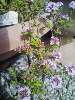 連休後半に入って疲れを感じませんか??きてるわ、私子供・・特に次男がいると疲れる昨日もね、友達が数人来て「皆で遊びに行くから(車で)送ってほしい」と頼まれたんですよ。行き先はツタヤとかユニクロのあるショッピングセンター。私の車、定員4人のところ全部で6人乗ったんです。なんとか詰め込んで送ってきたで 数時間後「迎えにきてほしい」と電話が入ったので行ってみたら、一人足りない 「途中ですねて一人で帰った」との話だったのですがこの消えた一人実は警察のお世話になっていたことが分かった立ち寄ったゲームセンターで遊戯用コインを盗んだのを見つかって補導されたとのこと。彼、先月も補導されたんですよね (そのときは火遊び)いわば要注意人物をゲームセンターに送り届けたんだ、私。なんだか気分が沈んで気分が沈んだときは庭に出よう!うちの庭ではハーブたちが元気です・・・ タイム、センテッドゼラニウムに花が咲いてます。チャイブにも蕾がカワイ~