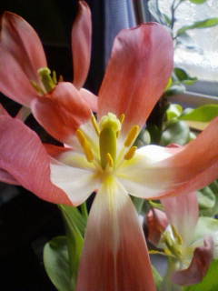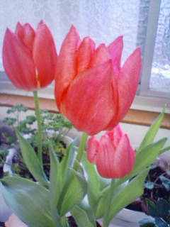 先日半額で買ったチューリップの鉢植え。花びら全開になってます。私にはチューリップが大笑いしているように見えるのですが・・・皆さんにはどう見えますか??次男の転校案はさておき今日、進学説明会があったので 参加してきました。転校するにしろしないにしろ 高校受験はしないとね~度重なる次男の粗相のせいで「ほらほら、あれが〇〇くんのお母さん」なんて後ろ指差される気がして私はうつむき加減にひっそりと座っていました大体の説明が済んで「何かご質問は?」司会の先生が言ったとき真っ直ぐに右手を高く挙げるお母さんがいました。そのお母さん、幼稚園のときにご一緒したのでよく知っていたんですよ。そのとき確かね上の息子さんが大学生で、娘さんが小学生で、下の息子さんが幼稚園。下の子供が大学卒業するまで38年かかる・・・気の遠くなるような子育てをされてる方でした。そのベテランママが質問した内容は 「他府県の私立の助成金はどうなってるでしょうか?」 というもの。こういう質問、大勢の前ではなかなかできないですよ。田舎から通える学校は限られるので県名を言っただけで、志望校と成績の席次がなんとなく分かるんです。お母さん同士では「う~ん、(地元の)公立志望」くらいのことで志望校はぼかすのが普通。子供からの情報で分かりますけどね。親同士は言わない。それがベテランママには怖いものは無いみたいでした。 お母さん、カッコいいーーーそうさ次男が粗相をしたと言っても、疑わしいだけでやってないんだもの。うつむいてちゃいけない!!!こんなことだからチューリップに大笑いされるんだわ