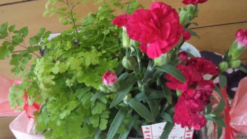 母の日も暮れようとしています。今日、私も一応カーネーションなるものをいただきました。子供から?ううん、それだったら良いんですけど・・・パパからです。「私、パパの母じゃないんですけど?」受け取るのに躊躇しましたが「子供たちが贈るために買ってきた」 とパパ。子供の手を全然スルーせずに渡されたのでなんだかな~ のカーネーションですが・・・添えてあるアジアンタムが好きな植物なのでもらっといてやるかっ (爆)それはそうと今日は自主的に母の日をさせてもらいました。一時退院した義父 (明日からリハビリ入院に) を訪ねたパパと次男。塾の振替授業で出かけた長男。気がついたら自分1人だったのでこれはリフレッシュのチャンス長男を送った足で健康ランドに飛び込み、岩盤浴で汗を流してきました。体が軽くなった気がしますね。実際体重を計ったら400g減でしたがうちは自主的に母の日をしないとね~夕飯も外食にして楽させてもらいます