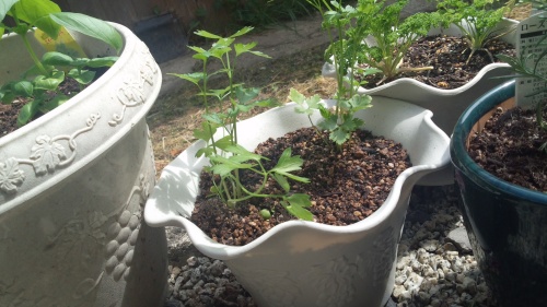 ハーブの苗を植え終わりました。サラダでムシャムシャ食べたいなって思ったのでサラダボールをイメージして・・・白くて丸い鉢で統一してみました。ハーブが大きくなってこんもりするころには大型のサラダボールみたいになる予定ですところで週末のフリーマーケットの準備を進めてます。ちょうど娘が帰省しているので「部屋にあったぬいぐるみ、どれを売ったらいい?」聞いたら「ここにあるのは売らないで」 とのことでした・・・了解!!! (笑)それはそうと帰省した娘、なんだか垢抜けない服装してるんですよ。帰ってきた日なんか厚ぼったいパーカーを羽織ってプリーツのスカートにぺたんこのスニーカー履いてました。田舎から町に下宿してちっとは垢抜けるかと思っていたのに今日も出かけましたが30年前の参観日のお母さんみたいな格好!あんまりお母さんみたいなので「このカーディガン着る?」捨てようと思っていた透かし編みのカーディガンを着させたら完璧なお母さんでした。若い子のトレンドはよく分かりませんね次男は次男で股下50センチくらいの歩きづらいズボン履いてるしさ。「変なズボン履いて・・・こけたらいいのに」そう思って見ていたら本当にこけたんですよ。そりゃ、大笑い・・・・・心の中でね