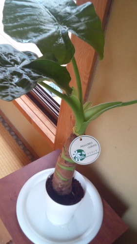 夕方になって雷が聞こえてきました。庭の植物に雨は欲しいですけど・・雷はね~雷が鳴る前に週末からの模様替えが仕上がりました。仕上げはもちろん観葉植物!うちの長男、土星人で土気を求めるタイプなので思い切り土くっさい植物を選びました・・・名前は 「クワズイモ」土の香りするでしょ~土星人というのは不思議なもので、茶系の服を着たがります。うちの姉も母も土星ですが茶系が多いですね。そういえば亡くなったじいちゃんも土星で茶系が多かった。だから茶系を着た人を見ると「土星人かな?」と思ってしまいます。皆さんのワードローブは何色??ちなみに私は火星人なので赤と青とのグラデーションです。ピンクになったり紫になったり・・今もピンクと紫の小花模様のTシャツ着てます模様替えが終わったところでフリ友(フリーマーケット仲間)からお誘いがきましたこどもの日のフリマではイマイチの売上だったので近いうちにリベンジ出店しようと約束していました。ちょうど模様替えで古いオモチャやらぬいぐるみが押し出されたのでそれを売りさばいてこようと思います。それにしても長男次男が保有していたカード類はものすごい量!ポケモンとか遊戯王とか・・・あれだけのカードを買うお金で為になる本を買って読ませたらおバカになっていなかったんじゃないか?!?今さら悔いても仕方ないですよね。おバカは植物に面倒見てもらって母はカードを叩き売る