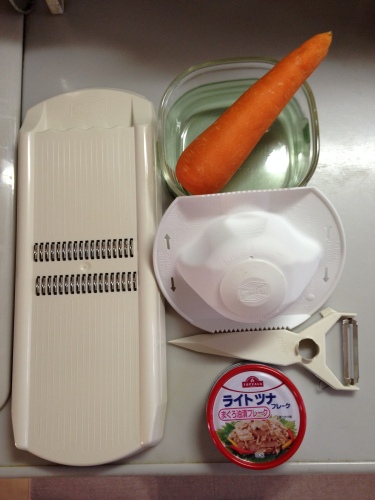 こんばんは! 今日は朝から快晴でしたがとにかく風の強い一日でした(^_^;) 病み上がりということもあり、今日は家でおとなしく色々とやっていました。 で、今日作ったもの。これはだいたい、いつも週末になると仕込んでおきます。 これがあるとなにかと楽なんです\(^o^)/ 「にんじんのツナオイル漬け」 材料は・・・にんじん 中1本 ツナ缶(オイル漬けタイプのもの) 1缶 ・・・以上です(^_^;) 紹介するまでもないのですが、一応作り方。 1 にんじんの皮を剥き、6~7センチ前後くらいの長さになるようにカット 2 千切りスライサーでシュッシュッと千切り 3 千切りしたにんじんを容器に詰めて・・・ 4 上からツナ缶を缶汁ごとかけます。ツナはにんじんの表面を覆う感じで(*^_^*) 5 フタをしめたらできあがり♪ 冷蔵庫で4~5日保存OK! 味をつけていないので、アレンジ自在♪ お弁当には、ハムを使ってこんな感じ(*^^)v ピエトロドレッシングであえて・・・ ハムにレタスと一緒にのせてくるくる・・・ ようじやピックでとめれば、彩り抜群、すきま埋めにも最適!! 続いて、休日のランチにはこんな感じ(#^.^#) イングリッシュマフィンを焼いて、バターを塗ったらレタスとハンバーグと一緒にはさめば 美味しくできました(#^.^#) 千切りスライサーはこちら→♪ベルナー 千切りスライサー ROKO 白♪ 安全ホルダーはこちら→♪ベルナー 安全ホルダー 白♪ スライサーで野菜をスライスする際は、安全のため必ず安全ホルダーを使ってくださいね!