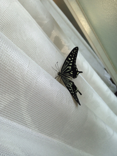 こんばんは! 大変大変ご無沙汰しております(;'∀') 毎日毎日忙しく過ごしているうちにあっという間に夏が終わり、秋深まり… ふと気づけばそろそろ10月も終わるではありませんか!! せっかく始めたこのブログ。このままにしておくのも…ということで またボチボチUPしていこうと思います。 さて、この夏ハマったもの。 今年、我が家の庭の鉢植えハーブにアゲハ蝶のイモ子たちが大発生!! 主にナミアゲハですが、オナガアゲハやキアゲハ、そしてモンシロチョウも(^^♪ せっかくなので虫かごに保護して毎日餌をやり、蛹から羽化して美しい蝶に変身するところを じっくり観察しました♪ 最初はちょっとこわかったイモ子たちがだんだんかわいらしく思えて、毎日 一心不乱にはっぱを食べる姿を見ては癒されておりました。 羽化した蝶を指にとまらせて、外に放すときは感動、、、そしてさみしさ。 今、最後の蛹が虫かごにおります(^^)/
