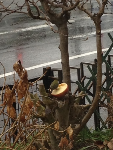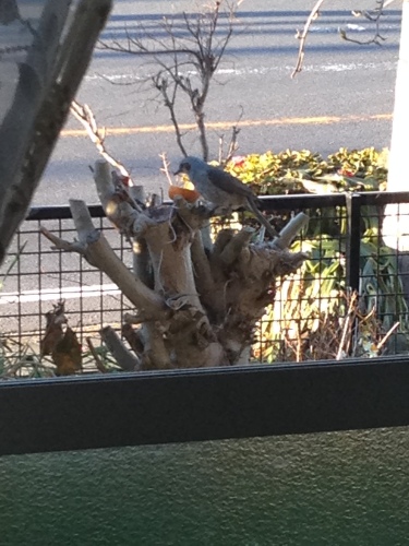 こんにちは(*^_^*) 今日はパパ出勤、子ども達部活。 日頃の疲れがたまっていて、朝からグダグダしています(^_^;) このところ、毎日庭の木に果物をさしておくせいか、鳥たちが遊びにやってきます。 いつも、朝いちばんに来るのはスズメ。早起きです(#^.^#) それと同じくしてメジロ、ヒヨドリと続きます。 メジロはけっこう人懐こくて、洗濯物を干しても近くの木で待機。 部屋に入るとすかさず来ます。 それに比べてヒヨドリは警戒心が強く、食べている最中も後ろをきょろきょろして 結局あまり食べないうちに退散することも。 最後にくるのがムクドリ。必ず2羽一組。1つの果物を仲よく2羽で食べていたり、 1羽が食べている間、もう1羽が見張っていたりします。 メジロも2羽でくることが多いです(#^.^#) なんだかんだでメジロが小さくて可愛いなぁ~って思ったりします(^_^;) ムクドリは仲よく2羽で。 今朝はパン粉をまいたらがつがつ食べていました(#^.^#)