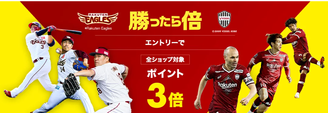 勝ったらポイント3倍毎月 0と5のつく日はポイント5倍48時間限定 エントリー 2ショップ購入でポイント3倍