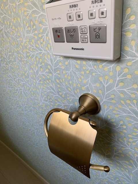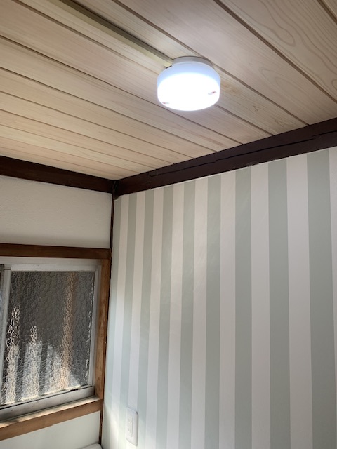 トイレ。天井は元の壁紙のまま。正面と窓のある