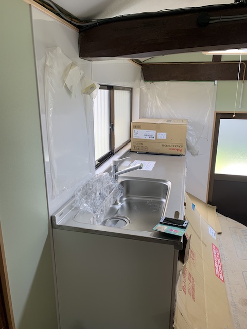 キッチン。こちらはシンクの上になるパネル部分は白、