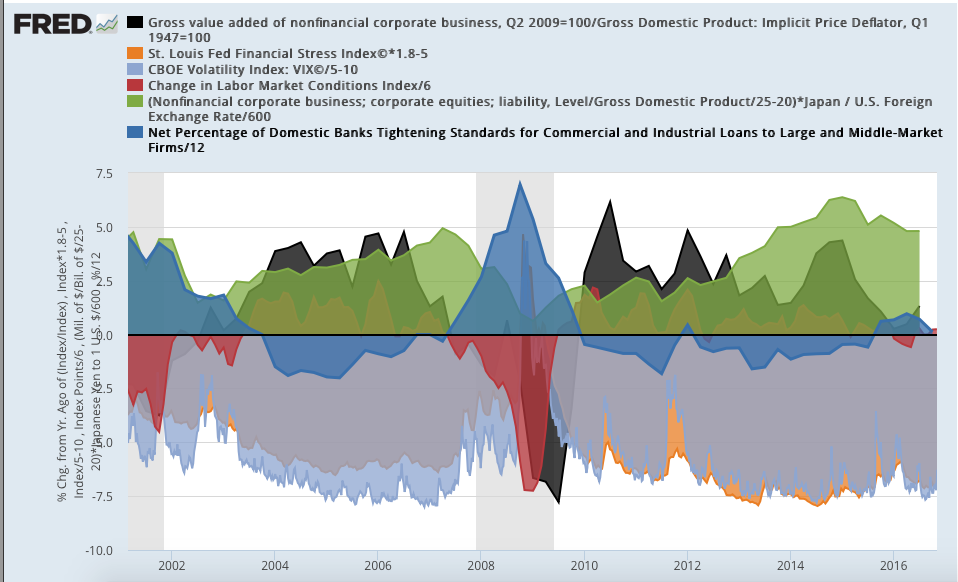 金融不安がないだけで、黒の付加価値利益/GDPの対前年比見ると強気になれません。それに比べて緑の株価/GDPが高いしね。http://hussmanfunds.com/wmc/wmc161219.htm