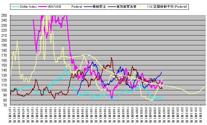 以上をまとめると,米国金利が上がっているときはドルをゆっくり買ってよい.しかし金利が下がりだして1-1.5年後は警戒ゾーン.