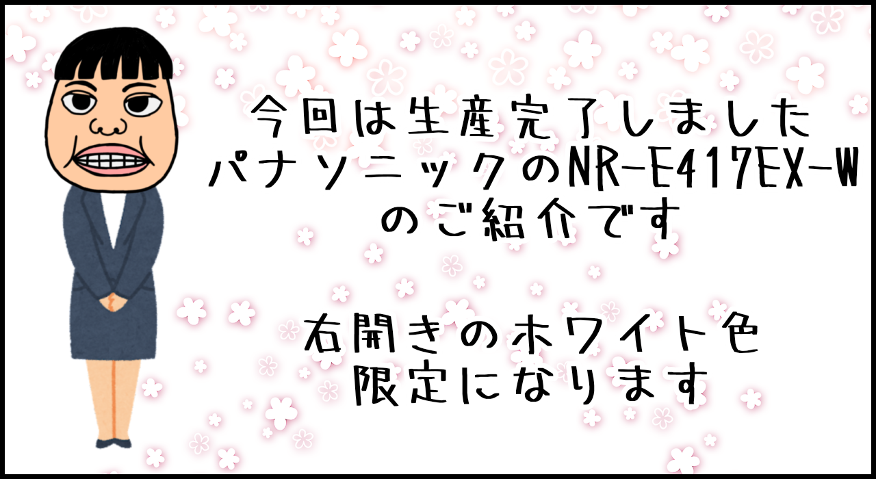 PANASONIC パナソニック 冷蔵庫 406L 右開き EXタイプ NR-E417EX-W ハーモニーホワイト スリム 大容量 奥 見やすい 届きやすい ナノイー搭載 除菌 におい 抑制 微凍結 肉 魚 新鮮 保存 急速冷凍 野菜 長持ち 湿度 コントロールにほんブログ村
