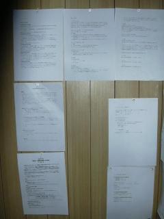3月14日のすみだ塾、プレゼンテーションに向けて仕事が終わった後、原稿を作っています。書いた原稿は、壁に貼り貼りしています。「期待しています」「楽しみにしています」「頑張ってね」など、いろんな方に声をかけられ、正直プレッシャーです。書いた原稿、いつでも見れるようにして緊張の持続と、士気を扇いでます。より好い内容に仕上がるようにひたすらアイデアを出し切る。壁に貼っとくとその効果は絶大です。プレゼンは自分のためでもありますが、参加した他の塾生が、それに感化されたり、反省したり、ショックを受けることが出来れば、やった甲斐がなおあります。また、組長、マリリンと続き、塾生の中でも年長者の部類。中途半端なプレゼンは出来ないぞ!すみだ塾にほんのわずかでも足跡を残せたら・・・そんな思いもあります。ターゲットは25年後。大きな夢をドンと設定し、現在の自分の年に近づけるうちに現実味を帯びた計画を組み立ててます。