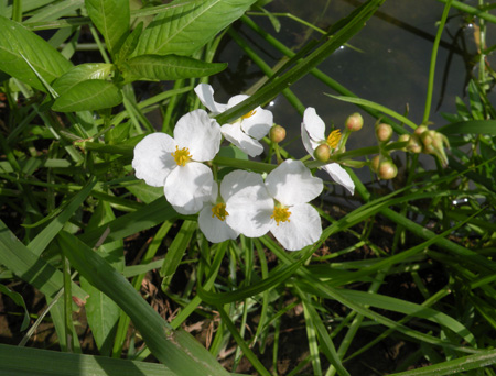 オモダカの花はよく知らなかったけど、ほかの植物に埋もれてしまっても、その3弁の白い花には気品があった。 花が咲き始めてからかなりの時間が経過しているのだろう。果実が連なった花茎もあり、その写真も一緒にアップする。この果実にはトウゴマ(ヒマ)を連想させるところもあるが、トウゴマのはもっと「針」が立派だったし、赤かったな(こちら)。