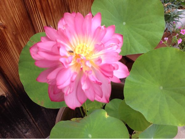 花ハスは初心者ですが、「茶碗ハス」が今朝、初めて咲きました。小形のハスなので、メダカとお似合いです。 東京であれば、東京大学がハスのいろいろな系統を保存していて、夏には一般公開もするようですね。