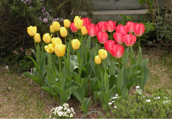 写真に撮った無名の赤と黄色のチューリップは、十年ほど前に一球58円で購入したもの。いずれも殖え続けているが、黄色の方が増殖率が高い。 チューリップでふと思い出すのは、末期ガンの方を病院に見舞ったとき、「春」を暗示してチューリップを持って行ったこと。その方は間も無く亡くなったが、そのことからチューリップが私の心に印象づけられることになった。