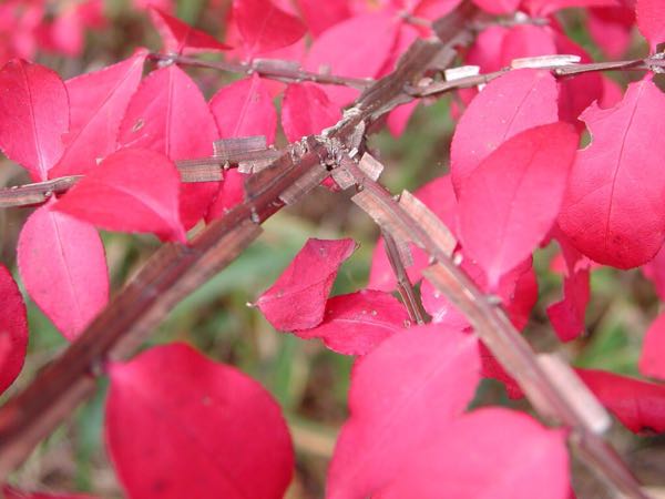 ニシキギは生垣にも使うそうだが、これは自然木。林間にあまりにも鮮やかな色なので、写真撮影したと記憶する。さらに枝に着く『翼(ヨク)』にも惹きつけられた。