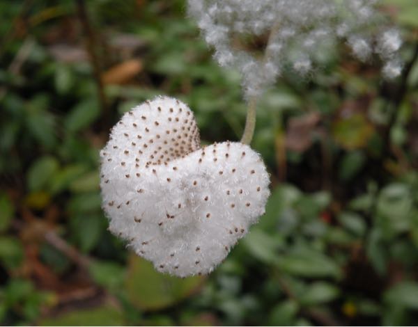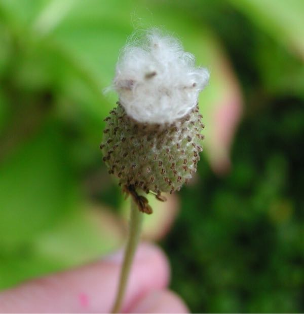 昨日のシュウメイギクの綿毛に続いて、同じアネモネ属のアネモネ・シベストリスの綿毛と花。このアネモネの花は春に咲き、綿毛もとっくに終わっている。 綿毛は果実の先端から始まり、全体がフワフワになった後、バラバラに飛んで行く。果実の表面に並ぶ黒い粒は種子かと思う。