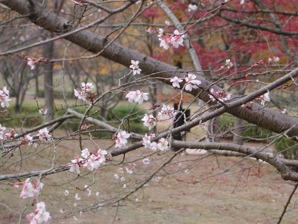冬桜は、秋冬から春にかけて咲くサクラの総称の場合と特定の種類を指す場合とあるらしいが、素人には後者を決めることは容易でない。写真のサクラは一応後者のつもり。