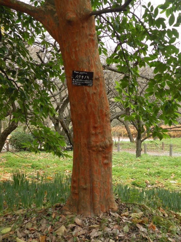 アルバムにはこんな写真もある。 『バクチ』につられ、京都府立植物園で撮った。撮ってみると面白い木で、樹皮が剥げ落ちて木肌が露出しているのだという。博打に負けて丸裸になったから『バクチノキ』。京都辺りは生育の北限らしい。