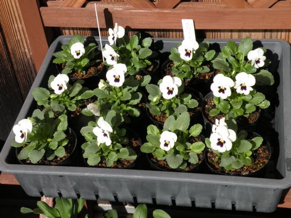 例年のスケジュールでは、パンジー、ビオラのタネを9月に入ると蒔くのだが、今年は9月1日に白内障の手術をしたので、一週間遅れになった。生育に今年の暖かい気候がどう影響したかは分からない。標記のビオラの開花が12株(ケース一杯)を超えたところで撮影。他の種類はこれから。