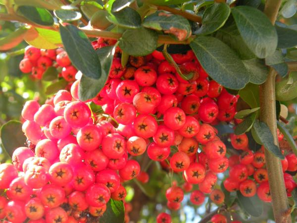 ピラカンサ属は分類学上の名称で、3種が庭木になっている。写真はトキワサンザシと思われる。我が家の木の由来は鳥の落としもの。最初は喜んでいたが、今やさらに撒き散らされて、うかうかすると我が家がピラカンサ屋敷になりかねない。