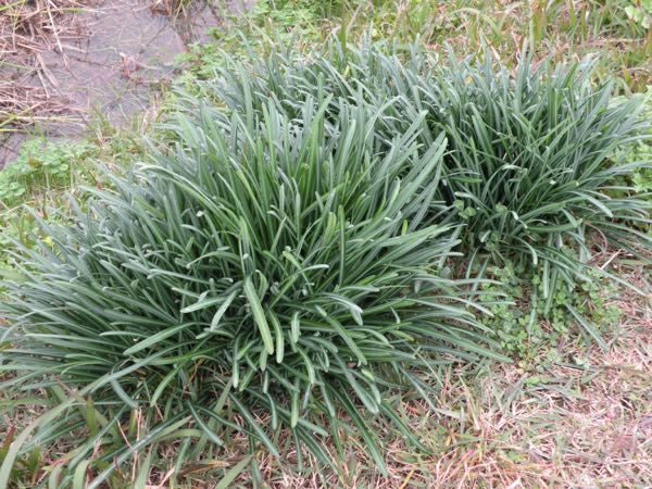 ヒガンバナの緑葉がいつの間にか盛上がっている。来年の春、カラスノエンドウなどが繁茂する頃まで田んぼの畦を独占することになる。その間、エネルギーや栄養素を蓄積するのだろう。
