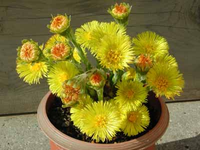 枯れる花もでてきたが、ご覧のように満艦飾の状態。買うときは、高価な福寿草の代用品とか考えていたが、こうなると残念ながら福寿草の「品」がない。それはそれとして相変わらず鮮やかな黄色である。