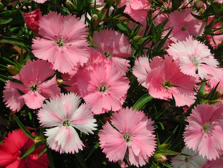 タキイにはテルスターというナデシコの矮性種がありますが、両者とも高さが15-20センチ程度なので、混ぜて花壇の縁取りに使っています。最盛期は、温度がかなり上がった今ごろで、見事な見映えです。