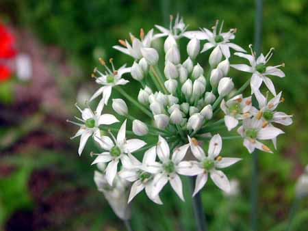 レバニラ炒めなど、ニラ独特の香りも愛好していますが、花がもつ甘い香りも一興です。野菜としてもらった苗のはずなのに、わが家ではもっぱら夏の花として庭を賑わしています。しかし、あちこちに増えてきたので、いずれ虫のように葉っぱに食らいつくでしょう。