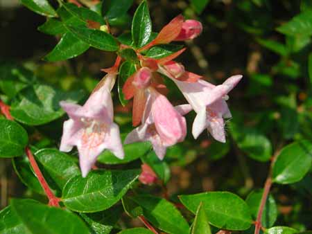 たとえば、ツクバネ(衝羽根)の由来になったがくが2枚しかありませんし、花弁の内側には模様や細い毛(名称を知らない)があります。遠くからでも、近づいても、ハナツクバネウツギとは違った雰囲気を醸します。