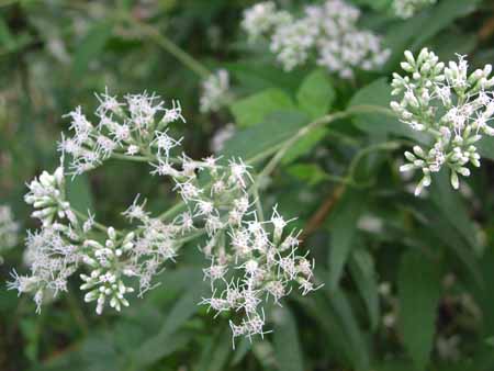 見つけたのが上の白い花。遠目で見るより、アップした方が可愛いですね。林の中でも日陰に咲いていて、花形が珍しい気がします。蔓性ではなく、すいすいと伸びた花茎の先に、花序が着いていました。