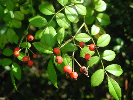 今日は、野ばらのオレンジ色を帯びた実が愛らしかったので、写真にしてみました。