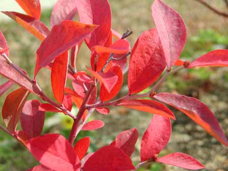 庭のブルーベリーの木が、去年と同じように紅葉。写真に映る色彩もまったく同じ。