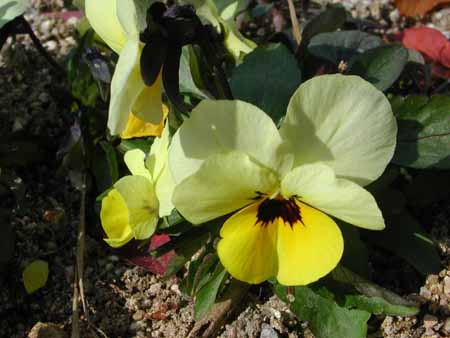 ビオラはどうやって春の接近を知るのか。氷点下が続く今、気温の上昇によるとは思えない。たぶん、私自身も感ずる、日差しの角度や強さによるのだろう。