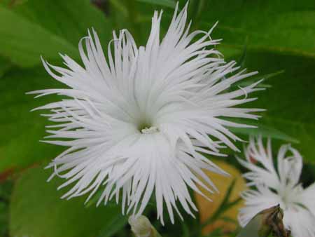 カワラナデシコは大和撫子ともいうが、自生の花は見たことがない。かといって、ひとの庭にも見あたらない。わが家では種を買って導入したので、あちこちに各色が咲いている。