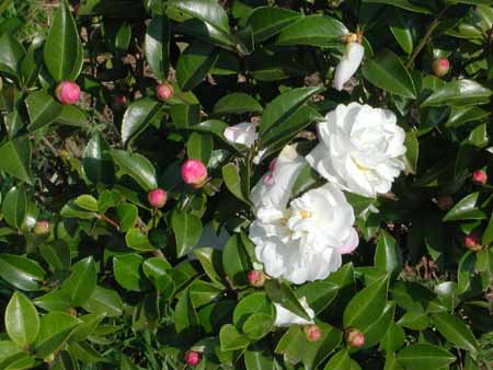 どういう趣旨で植えられたかは不明だが、サザンカが、運転手の目に留まることはあるだろうか。人通りの少ない交差点だから、ひっそりと咲いていると言ってよい。しかし、太陽がさんさんと注ぐ明るい場所。
