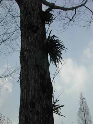 葉は海草のようで、茎はみえない。葉が出ている場所は下枝を切り落とした跡のようである。だが、洞があって落ち葉や水が溜まっているようにはみえなかった。