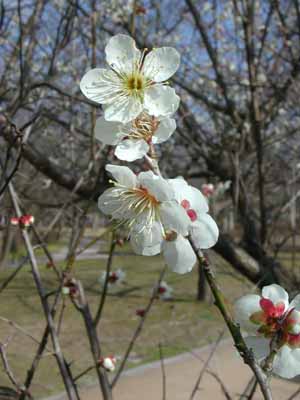 梅の花も、同じ木で比較したわけではないが、早いと思う。鏡山公園で2月に梅が見られるのは、初めてのこと。