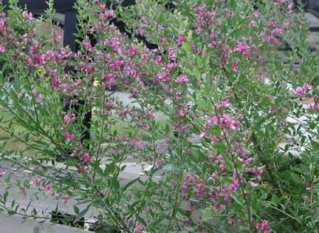 それは、2年前に買った、自宅のハギが立派に育った影響かもしれない。名札は「ミヤギノハギ」だったが、あまり枝垂れてくれない。去年から素性を疑われている存在。ただ花序がとても密に付く。