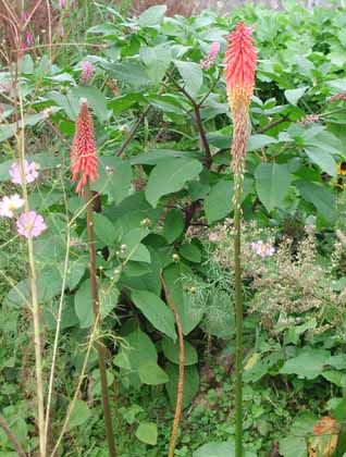 この手の花は、さっぱり名前がわからない。高さは1mほどか。ヒガンバナのような濃い緑の葉が、根元を取り巻いていた。