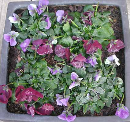 東広島市西条にあるアメダス観測点で記録された最低気温に従うなら、 写真は ー3℃くらいを示す。温度がこれより高くなると、花や葉の霜が減り、花も軽く頭を垂れる程度になる。逆にこれより低くなると、霜が発達し、より深く頭を垂れるようになる。
