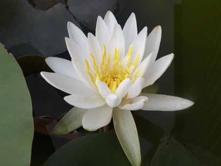 スイレンの品種のことなどまるでわからない。「アルバカンジシマ」を買った理由は、カタログで花が全体にクリーム色に見えたから。しかし最初の花が咲いたら、思ったより白かった。