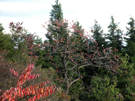 だが、山林で自己主張している柿の姿は意外そのものだった。野生の柿ってあっただろうか。