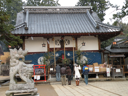 今年の元旦は、大晦日の雪の延長で、雪が舞う一日だった。しかし写真は、雪がほとんどとけてしまった午後の時間帯。