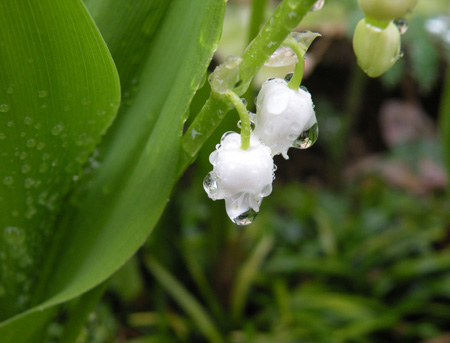 この花の花弁は水を弾かないらしく、水滴がいっぱいまとわりついている。